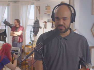 A film crew struggles to get through a day when their boom operator can't keep the microphone out of the shot.